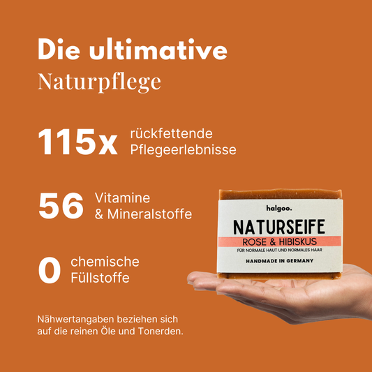 Alle unsere Naturseifen bestehen zu 100 % aus natürlichen Inhaltsstoffen und werden aus edlen, pflanzlichen Ölen und Buttern handgefertigt.